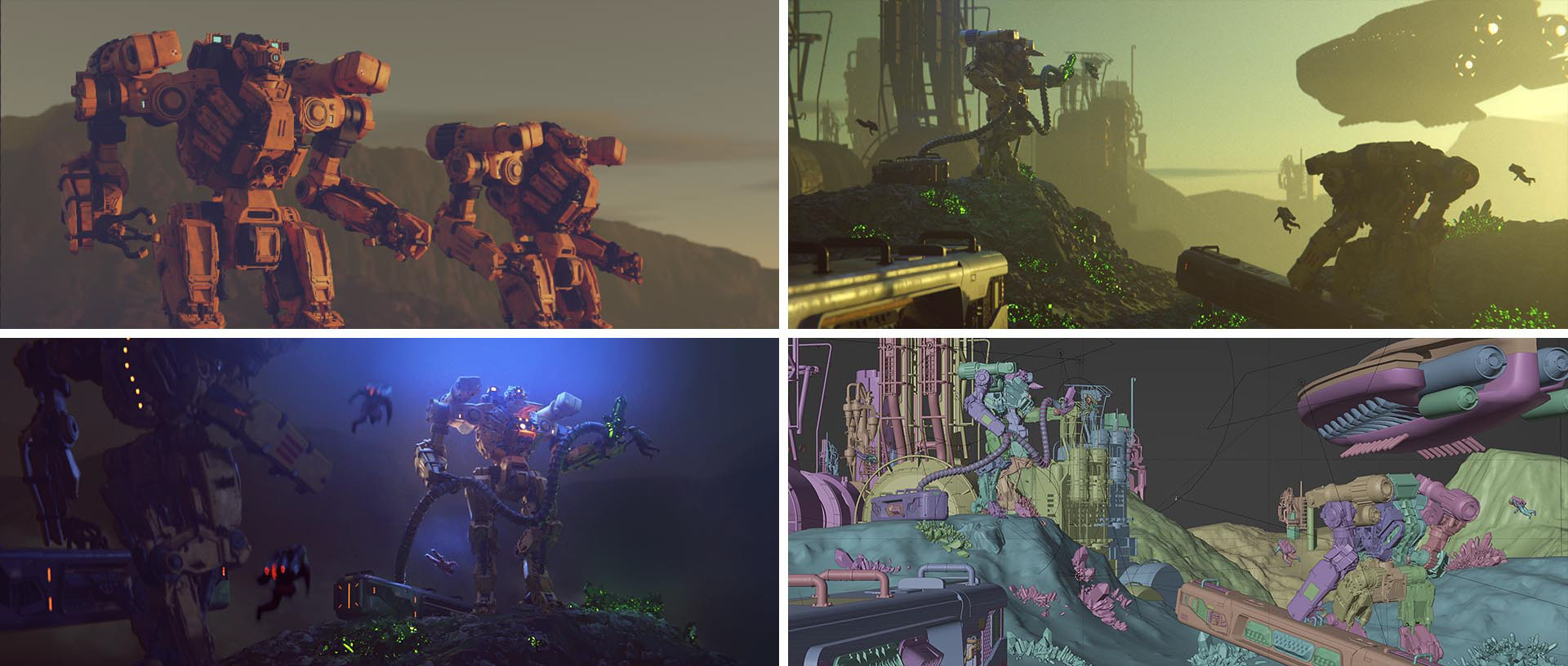 All images shown below were made with 2D and/or 3D workflows including Blender, Maya, Photoshop, Substance Painter, Unity and Unreal.